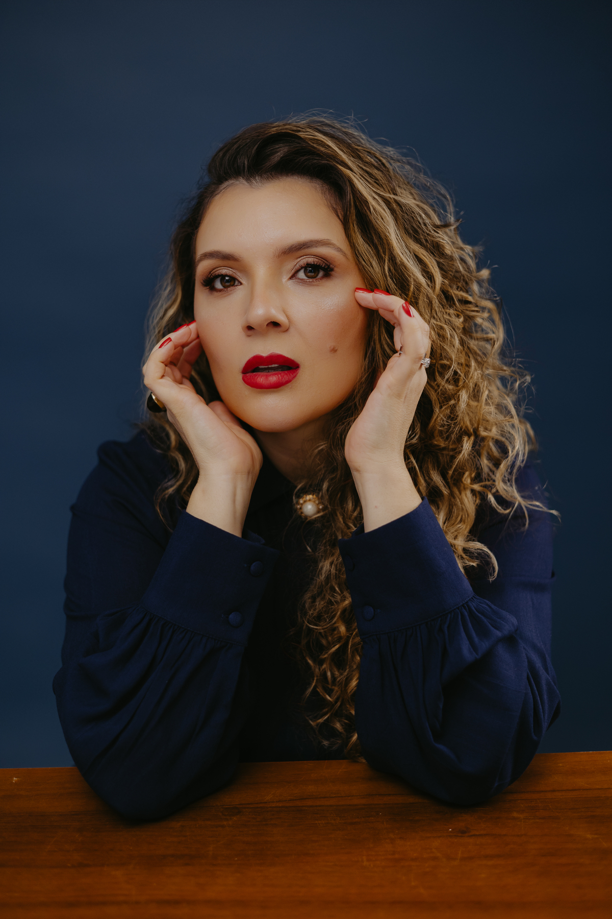Cores fortes e o jogo de sombras trouxeram a intensidade que ela desejava, refletindo sua linguagem única e presença marcante.